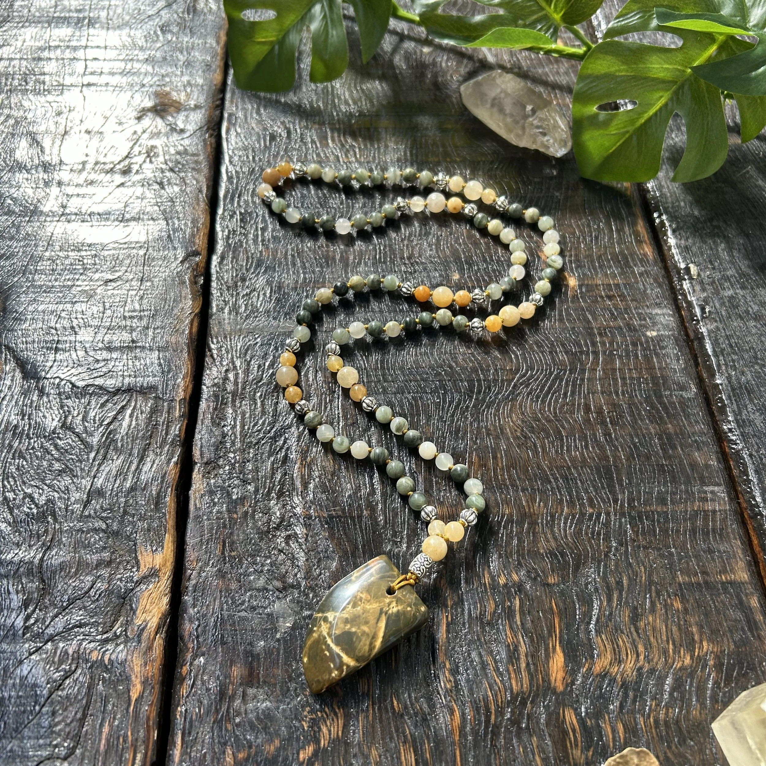 The first stone necklace I crafted was created from a collection of broken stone bracelets.